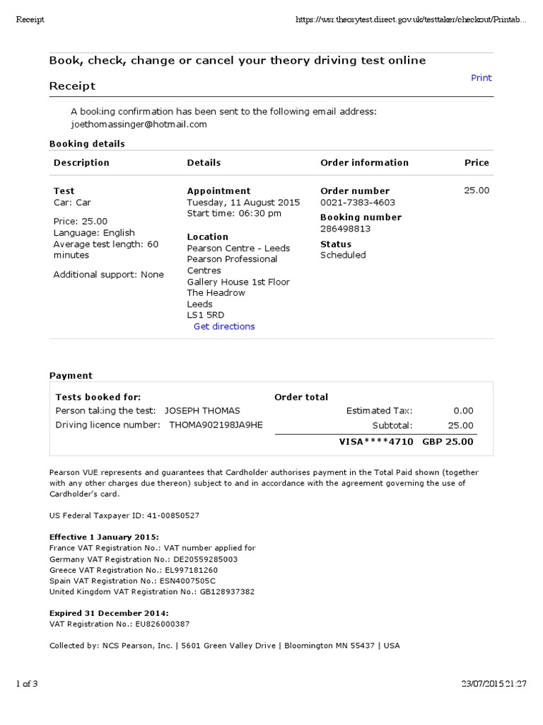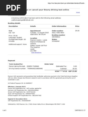 Theory Test Receipt Value Added Tax Driver S License