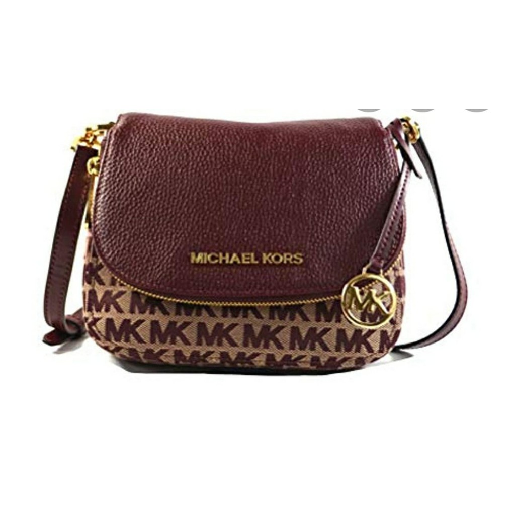 100 Authentic Michael Kors Bedford Monogram Small Flap Crossbody Oxblood Shopee Philippines