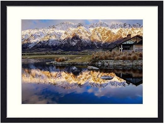 Amazon Com Asommet Lake House Under Beautiful Mountain Range Solid Wood Framed Wall Art Print Picture Home Decor 20x14 Inches Posters Prints