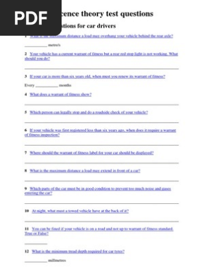 Learner Licence Theory Test Questions Specialist Questions For Cars Road Position Trailer Vehicle Tire